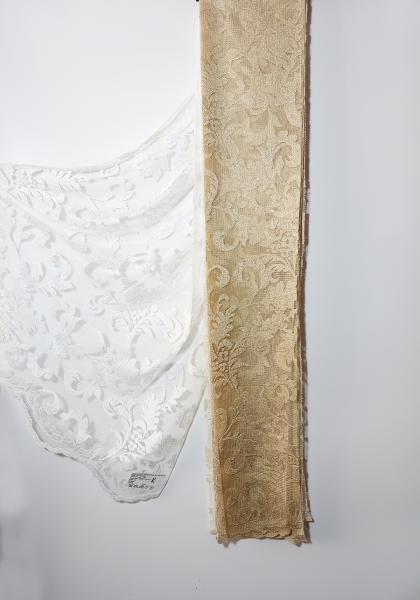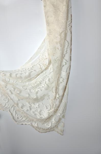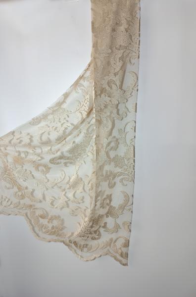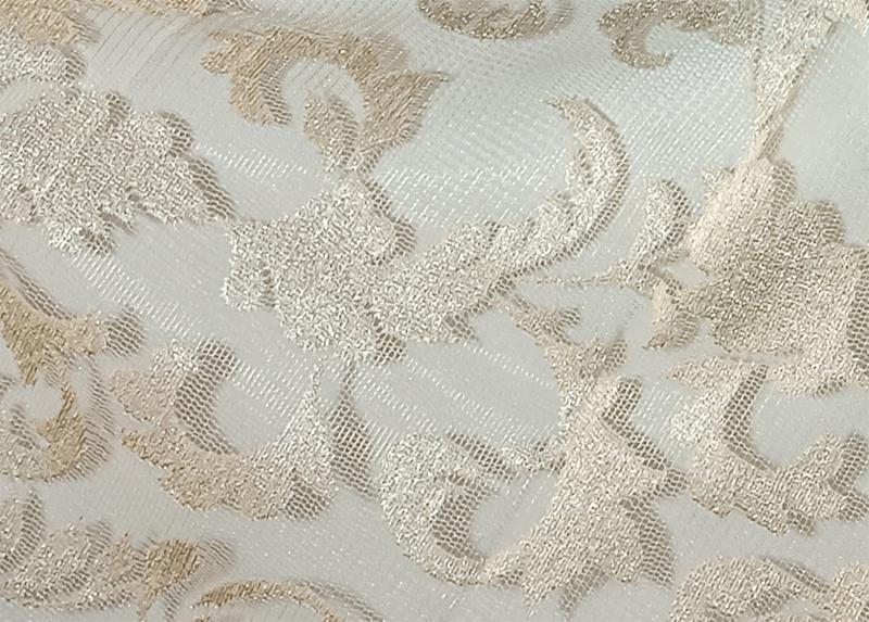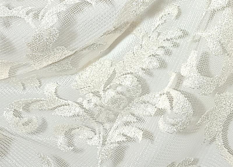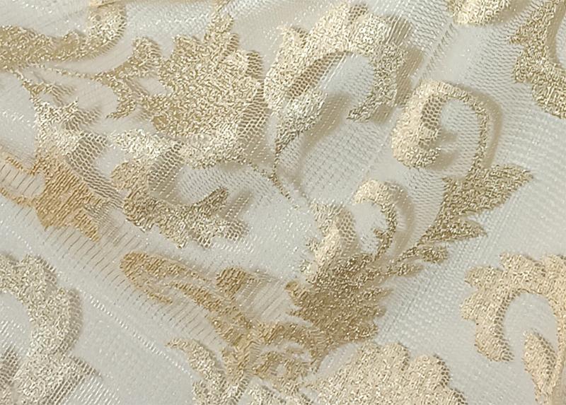 Záclona s historickým barokním vzorem, tkaný Jacquard na hrubší síťovině, transparentní, s kantou