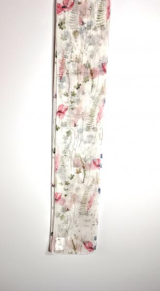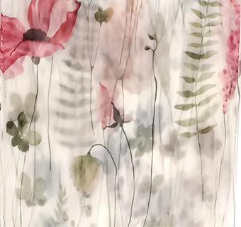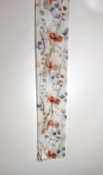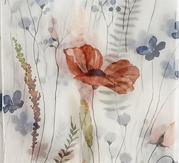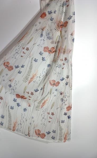 Záclona s jarním květinovým vzorem, transparentní, potisk s olůvkem