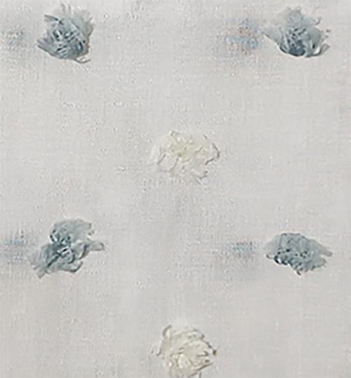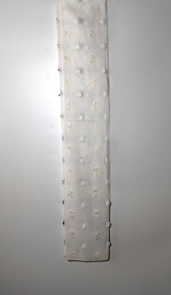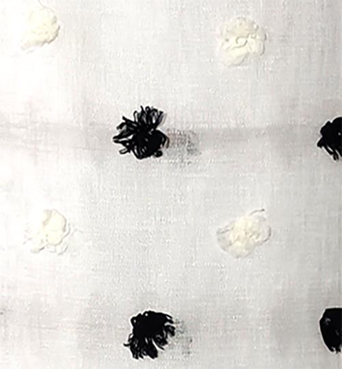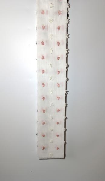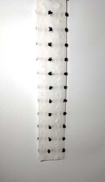 Záclona s našitými barevnými, chlupatými nopky, transparentní, s olůvkem, základ je jemný Batist